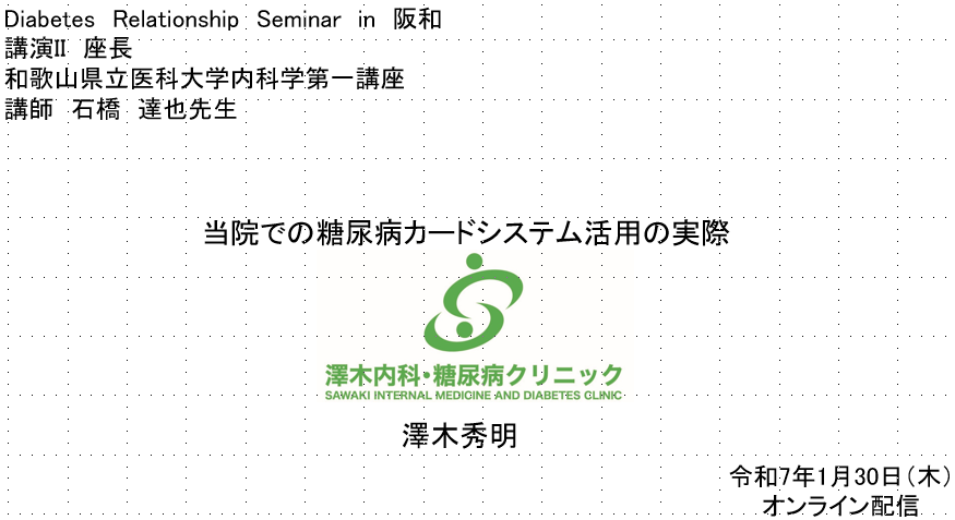 2025年1月30日(木曜日)大阪市内の会議室からオンライン配信で、糖尿病カードシステムに関する講演を行いました。