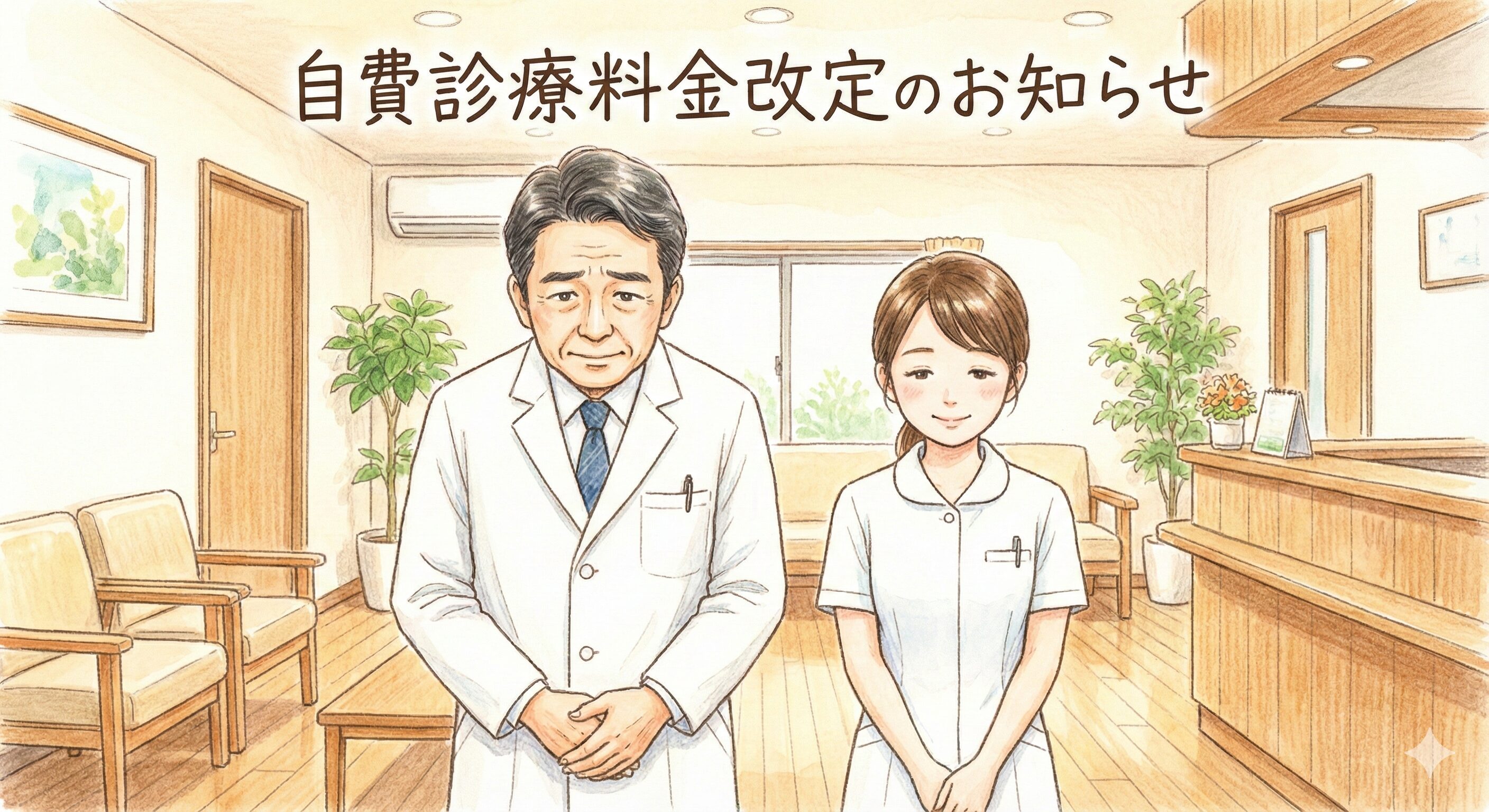 つきましては、今後も質の高い医療サービスを継続して提供するため、誠に心苦しいのですが、2026年1月より自費診療の料金を一部改定させていただくこととなりました。