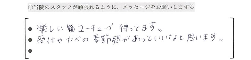 当院のスタッフにメッセージ