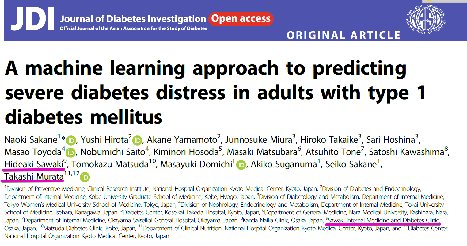 Sakane N, et al. A machine learning approach to predicting severe diabetes distress in adults with type 1 diabetes mellitus.