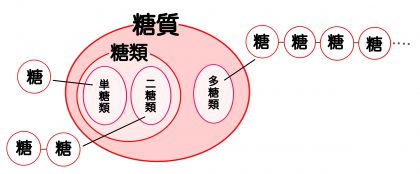| 糖の種類 | 単糖類 | 二糖類 | 多糖類 |