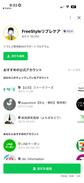スマホのLINEアプリを開いて、「FreeStyleリブレケア」という公式アカウントを友達追加してください。