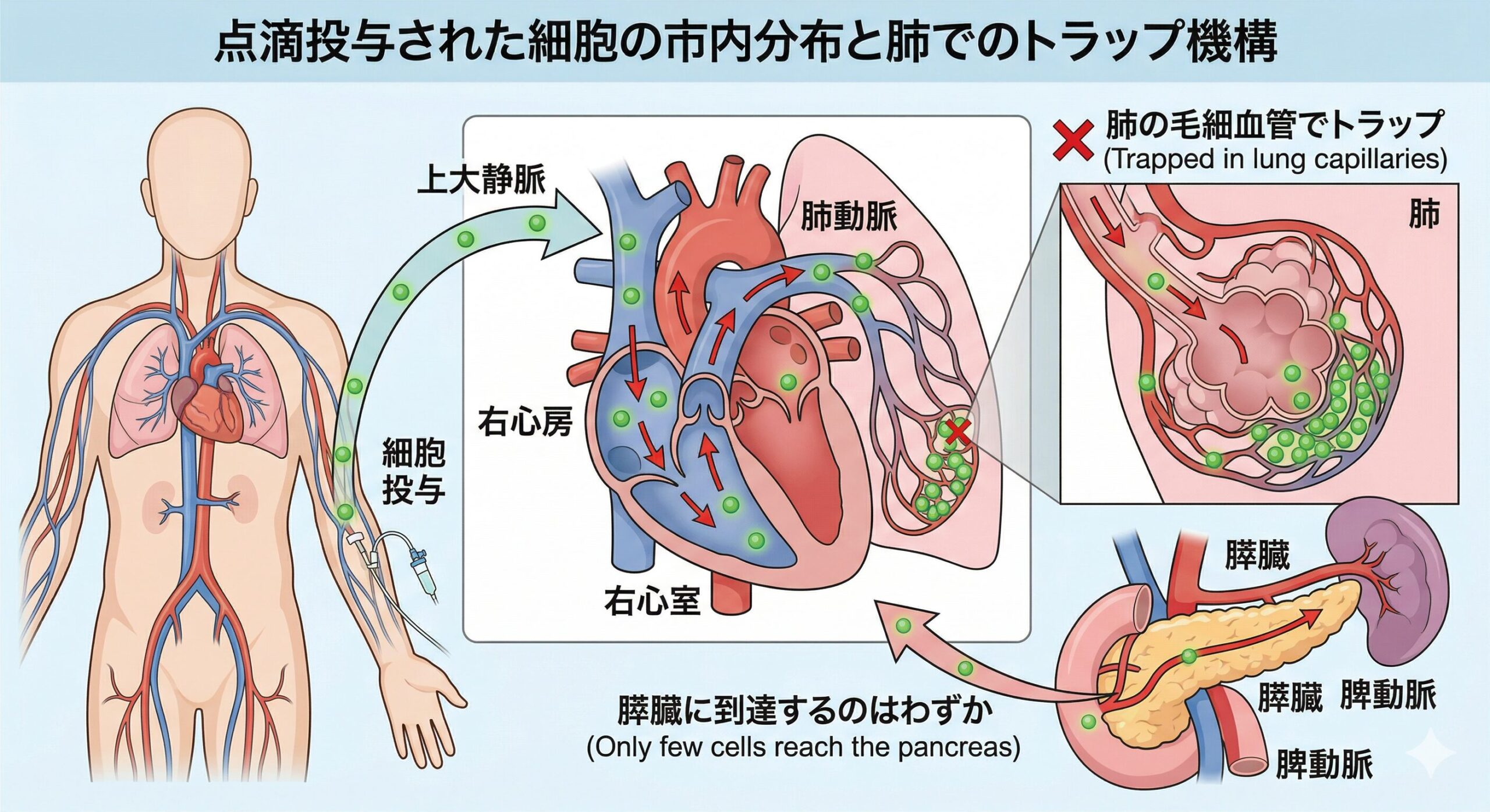 点滴した細胞は膵臓にほとんど届かない